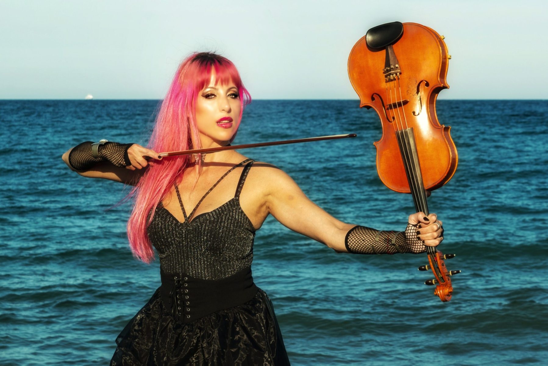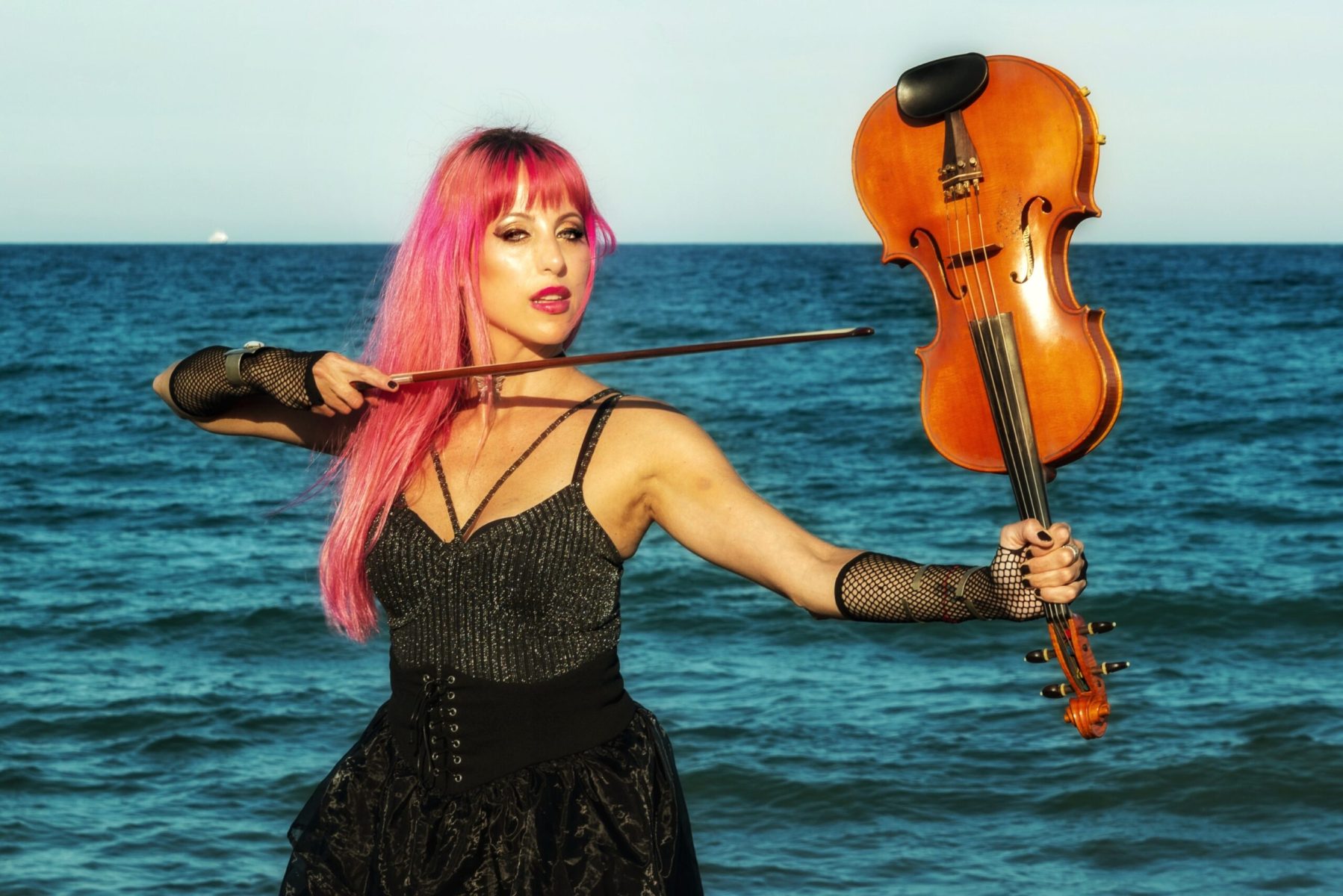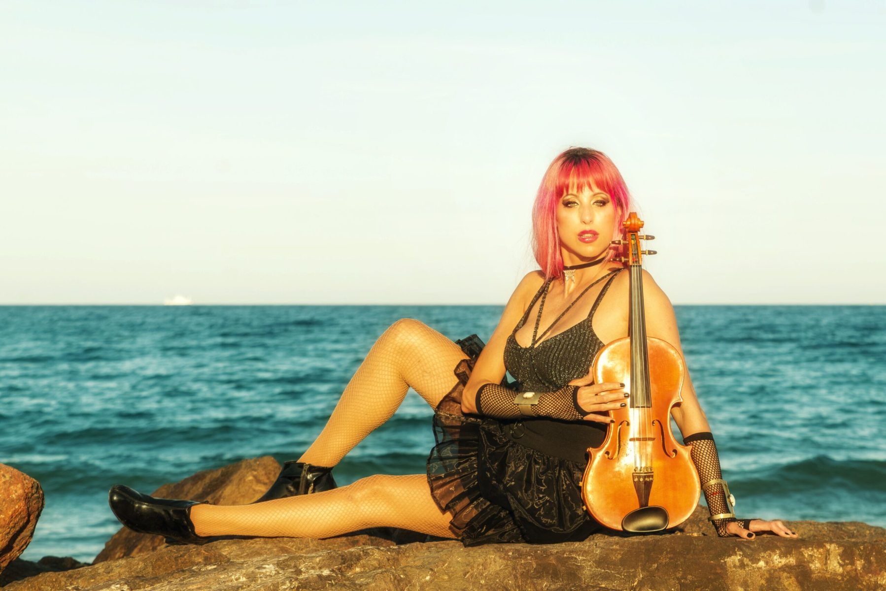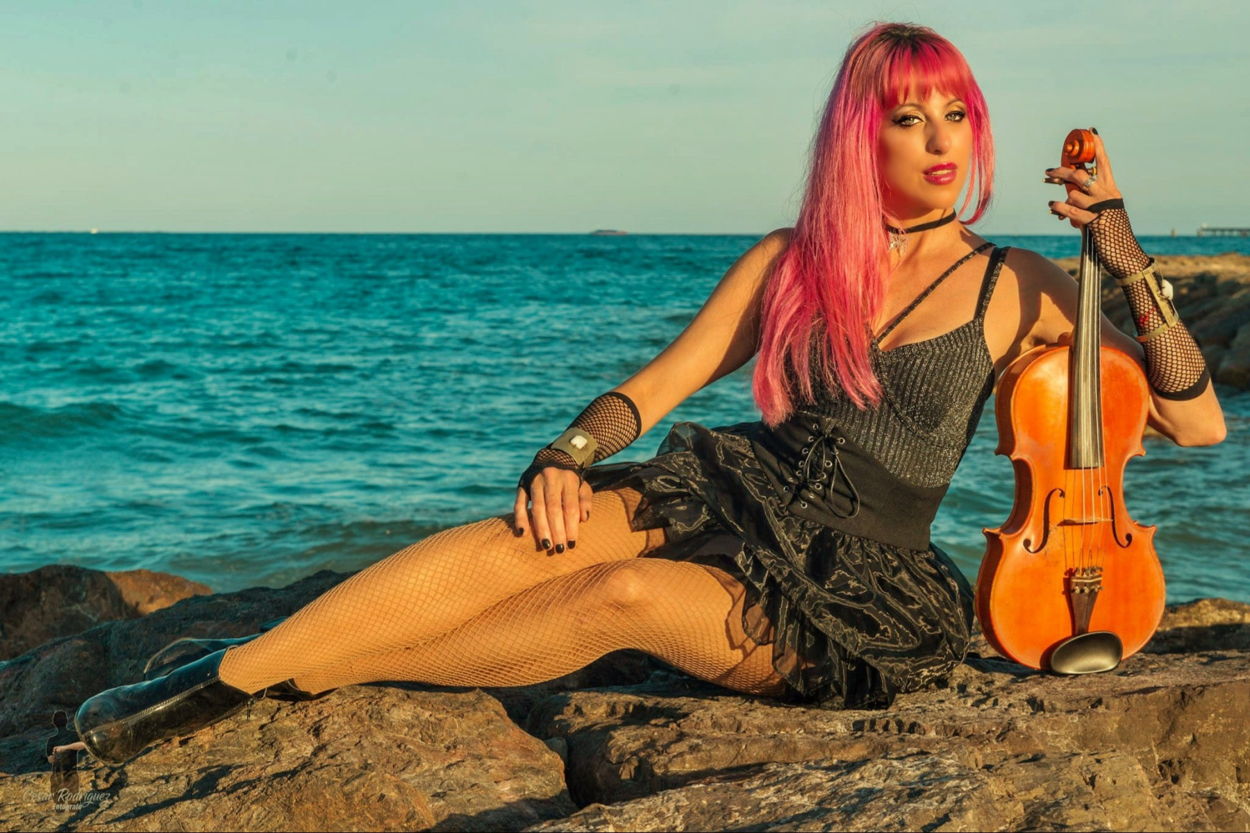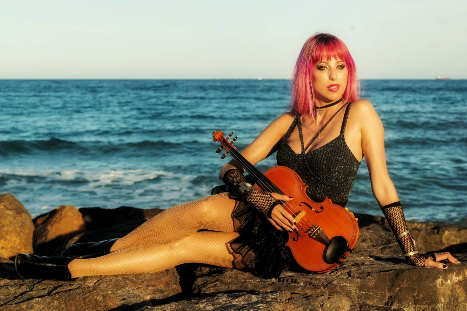 Producción fotográfica sobre la nueva imagen de la artista en un paisaje español que tiene  como atracción el azul particular de  las playas de Valencia.